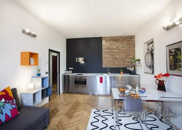 A Károly híd körülbelül 2 km-re, míg a Muzeum Antonína Dvořáka 1 km-re helyezkedik el. Az apartman a Prága V. e körzetben található. A Ferencesek kertje autóval 10 percre található az apartmantól.